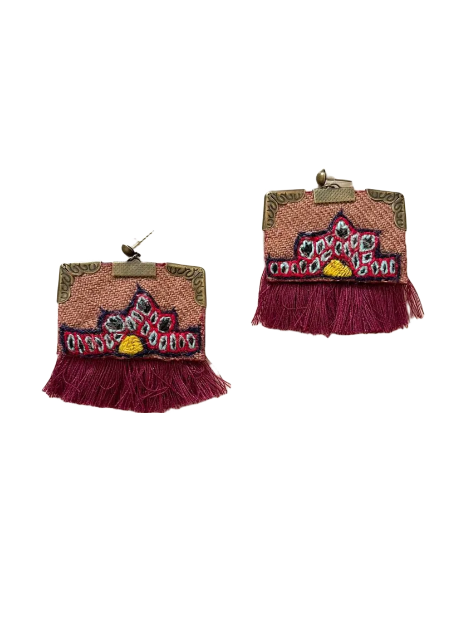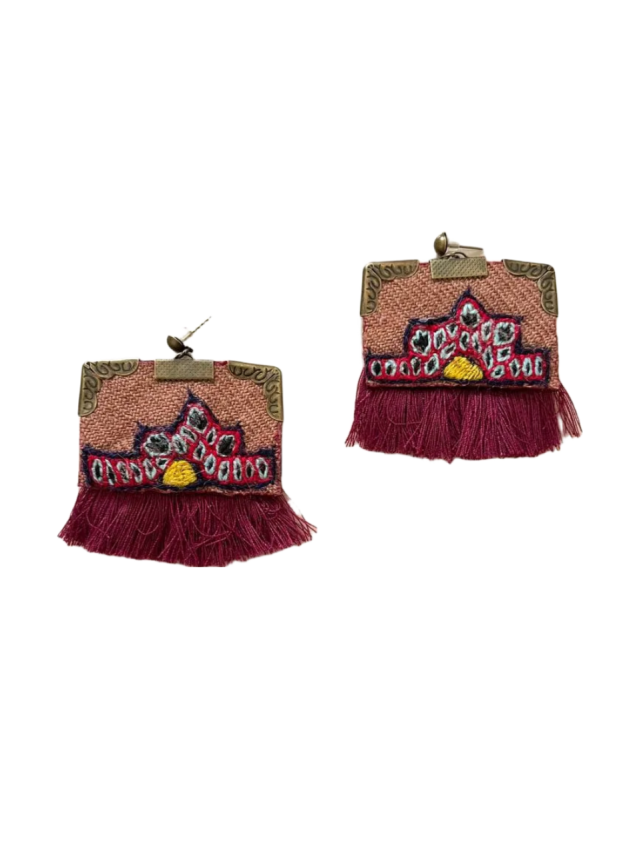 این گوشواره دستدوز است و توسط زنان کرمان به روش پتهدوزی دوخته شده است.