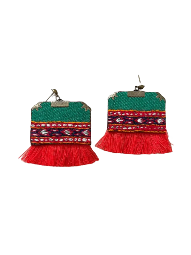 این گوشواره دستدوز است و توسط زنان کرمان به روش پتهدوزی دوخته شده است.