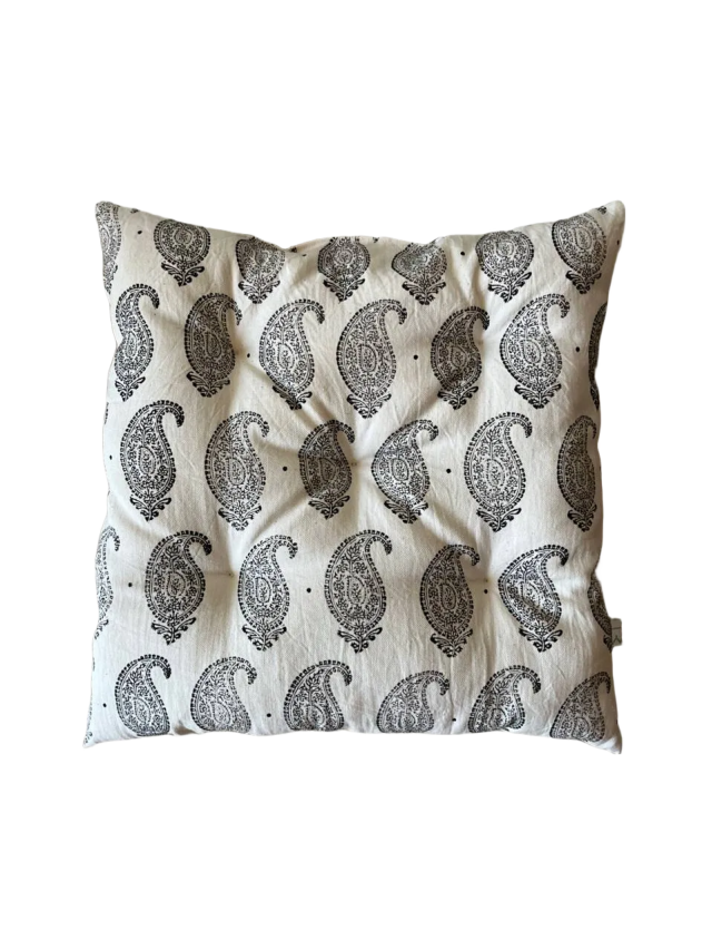 تشکچههایی با پارچهی قلمکار چاپ دستی از کارگاه آقا عباد در اصفهان، به یاد زایندهرودی که حالا فقط خاطرهاش مانده.